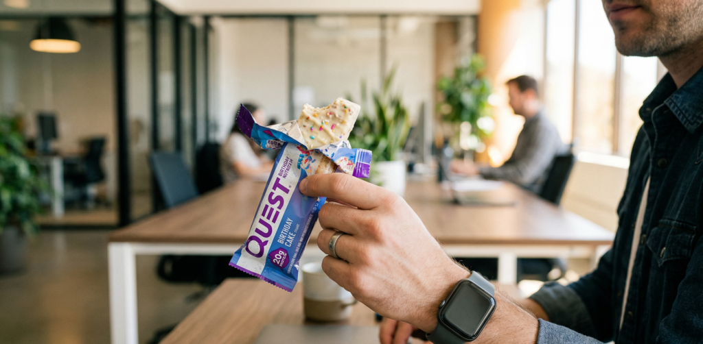 - Lanches intermediários: É o momento onde a maioria “fura” a dieta. Ter à mão uma barrinhas de proteína de qualidade garante que você não catabolize entre as grandes refeições.