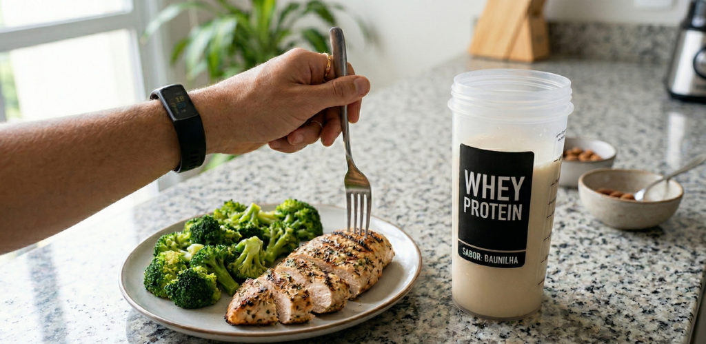 Para quem tem uma rotina corrida, atingir 150g de proteína apenas com comida sólida (como peito de frango e ovos) pode causar desconforto gástrico e fadiga mastigatória. É neste cenário que a suplementação estratégica se torna a melhor amiga da sua dieta.